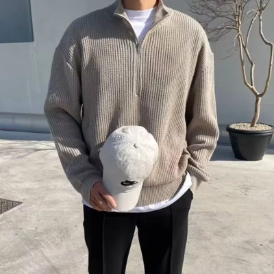 Luca | Comfortabele gebreide trui met halve rits voor heren